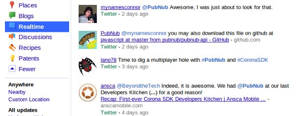 Your done! Note that this isn’t a normal results page. New results will appear on the screen somewhat instantly as they are published on the web. You are armed with a full listing of Social and Web search results, updated and pushed to you as they happen.